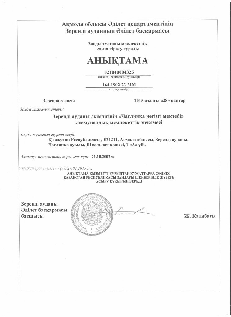 Коммунальное государственное учреждение "Основная средняя школа станции Чаглинка отдела образования по Зерендинскому району управления образования Акмолинской области"